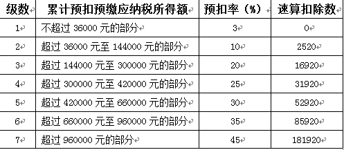 2.計算本期應(yīng)預(yù)扣預(yù)繳稅額根據(jù)累計預(yù)扣預(yù)繳應(yīng)納稅所得額,對照個人所得稅預(yù)扣率表一,查找適用預(yù)扣率和速算扣除數(shù),據(jù)此計算累計應(yīng)預(yù)扣預(yù)繳稅額,再減除累計減免稅額和累計已預(yù)扣預(yù)繳稅額。如果計算本月應(yīng)預(yù)扣預(yù)繳稅額為負值時,暫不退稅。納稅年度終了后余額仍為負值時,由納稅人通過辦理綜合所得年度匯算清繳,稅款多退少補。